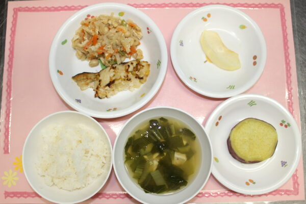 ごはん 鯖のねぎ塩焼き 切干大根の旨煮 みそ汁 りんご
