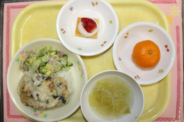 ドリア ブロッコリーとハムのサラダ 春雨スープ みかん