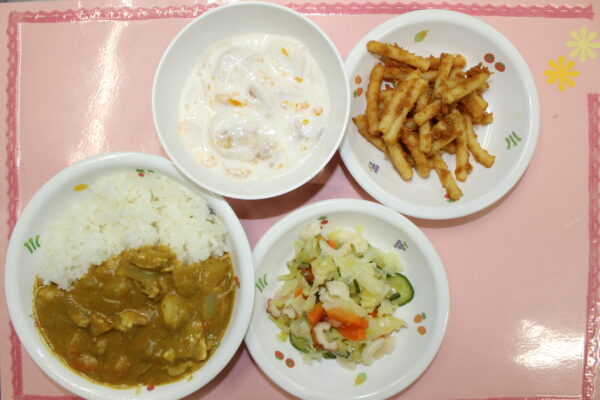 カレーライス フレンチサラダ 果物のヨーグルト和え