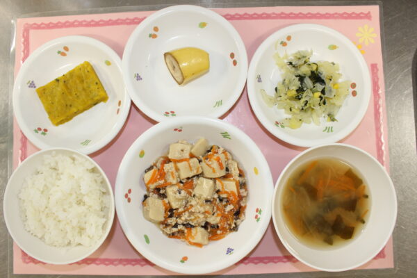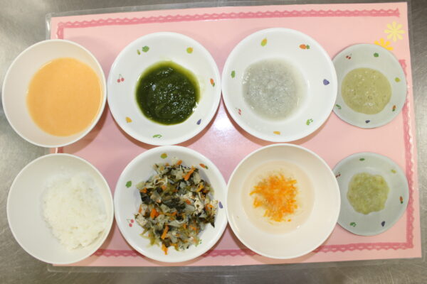投稿日: 2026年4月14日4月14日の献立 上段(初期)5分粥 しらすと野菜の煮物 バナナ 下段(後期)軟飯 鶏ひき肉と野菜の煮物 野菜スープ バナナ御飯 凍り豆腐とひき肉の煮物 キャベツとじゃこの酢和え みそ汁 バナナ ~おやつ~ 野菜もち
